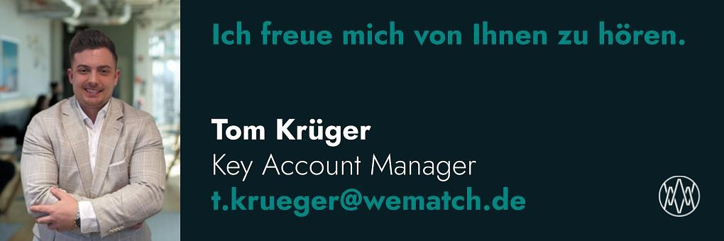 Dann melden Sie sich noch heute mit Ihrem Profil und Tagessatz unter t.krueger@wematch.de und sichern Sie sich Ihr Projekt bei einem spannenden Kunden.