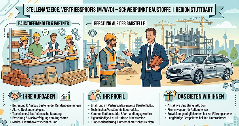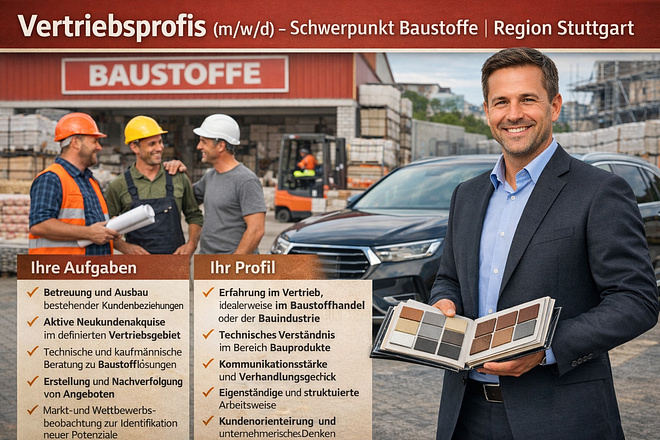 Vertriebsprofis (m/w/d) – Schwerpunkt Baustoffe | Region Stuttgart