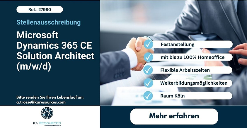Wollen Sie in einem jungen, erfahrenen Team, das sich auf die Analyse, das Design und die Implementierung von Geschäftsprozessen fokussiert hat, eine verantwortungsvolle Stelle antreten und als gleichwertiges Mitglied im Unternehmen zählen, dann sind Sie bei dieser Firma genau richtig. Die Technologiebasis ist die Power Platform in Kombination mit Dynamics 365 Customer Engagement und Azure. Die Spezialisten haben jahrelange Branchenexpertise und sind mit der Standardlösung von Microsoft Dynamics 365 sowie Ihren Erweiterungen wie D365 Service, D365 Sales, D365 Field Service, D365 Marketing und Power Platform bestens vertraut. Selbst der Geschäftsführer ist als Berater und Solution Architekt bei den Kunden und Partnern im Tagesgeschäft tätig. Freuen Sie sich auf eine ehrliche Unternehmenskultur und Effizienz. Sie können die Firma und das Team mit aufbauen, beraten auch Partner und müssen keinen Vertrieb machen, ebenso wenig wie Ihre Projekte tracken, Lizenzberatung - und -verwaltung sowie kleinteilige Entwicklungsarbeiten. Die Projekte warten bereits auf Sie. Sie arbeiten direkt mit Microsoft zusammen und können im gut angebundenen Büro im Raum Köln oder so viele Tage wie Sie möchten im Homeoffice deutschlandweit arbeiten (auch bis zu 100%). Da alles online gemacht werden kann, benötigen Sie keine Reisebereitschaft. Freuen Sie sich auf flexible Arbeitszeiten ohne Wochenendarbeit und 30 Tage Urlaub. Die komplette Ausrüstung wird Ihnen gestellt, welche Sie sich aussuchen können. Weiterbildungen sind gewünscht, damit Sie immer auf dem neuesten Stand bleiben. Freuen Sie sich auf einen Auslastungs-Bonus sowie eine Bezahlung je nach Seniorität, aber auf jeden Fall branchenüblich. Ebenso gibt es vermögenswirksame Leistungen und ein Jobticket, Sportflat oder was auch immer Sie wollen. Wenn Sie darauf Lust haben, bewerben Sie sich noch heute.
