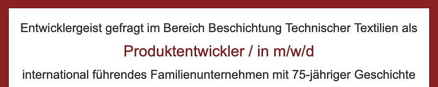 Produktentwickler/in Beschichtung Technische Textilien (m/w/div)