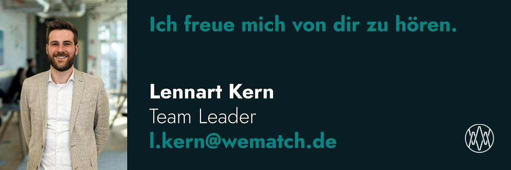 Solltest Du nicht auf dieses Profil passen, jedoch an einer neuen Position interessiert sein, dann freue ich mich dennoch über Deine Unterlagen und rufe Dich umgehend zurück, um Deine Interessen und Möglichkeiten zu besprechen.