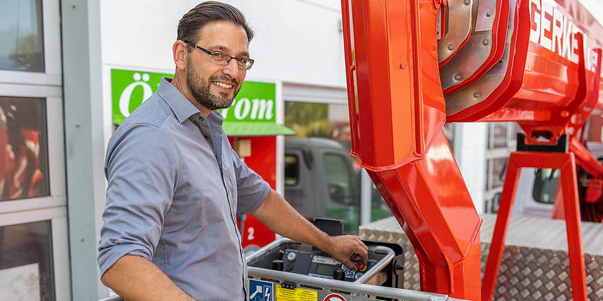 Die Gerken GmbH aus Düsseldorf ist mit über 40 bundesweiten Standorten und einem Sortiment von 12.000 Mietgeräten eine der führenden Arbeitsbühnenvermietungen.