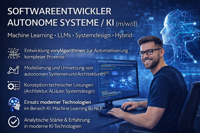 Neben der Entwicklung spezialisierter Anwendungen liegt der Fokus auf modernen Technologien, datengetriebenen Systemen und zukunftsorientierten Automatisierungslösungen. Zur weiteren Verstärkung des Entwicklerteams wird aktuell ein Softwareentwickler mit Schwerpunkt autonome Systeme / KI (m/w/d) gesucht.