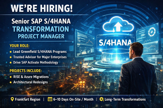 Kurz gesagt: wir suchen ein erfahrener S/4HANA-Transformationsleiter mit technischem Tiefgang, der nicht nur Projekte steuert, sondern Strukturen aufbaut und das Unternehmen methodisch wie strategisch weiterentwickelt.