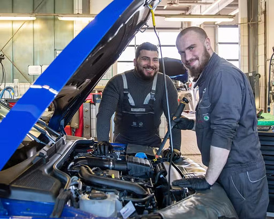Gezielte Weiterbildung: Wir unterstützen dich mit spezialisierten Schulungen und Fortbildungen, z. B. zum Kfz-Servicetechniker oder Kfz-Meister, sowie regelmäßigen Herstellerschulungen zu neuesten Technologien. Du entscheidest, ob du dich in der Welt der Verbrenner oder der E-Mobilität weiterentwickeln möchtest.