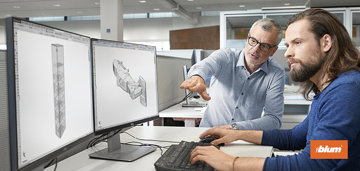 Blum stellt Klappen-, Scharnier-, Auszug- und Klappensysteme für Möbel her, die in über 120 Märkte geliefert werden. Wusstest du, dass bei der Auslegung unserer Produkte verschiedenste hoch moderne Simulationsverfahren angewendet werden? Unser Simulations-Team begleitet unsere Produkte von den ersten Skizzen bis hin zur Auslieferung.