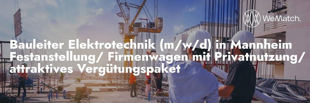 Bauleiter Elektrotechnik (m/w/d) in Mannheim Festanstellung/ Firmenwagen mit Privatnutzung/ attraktives Vergütungspaket