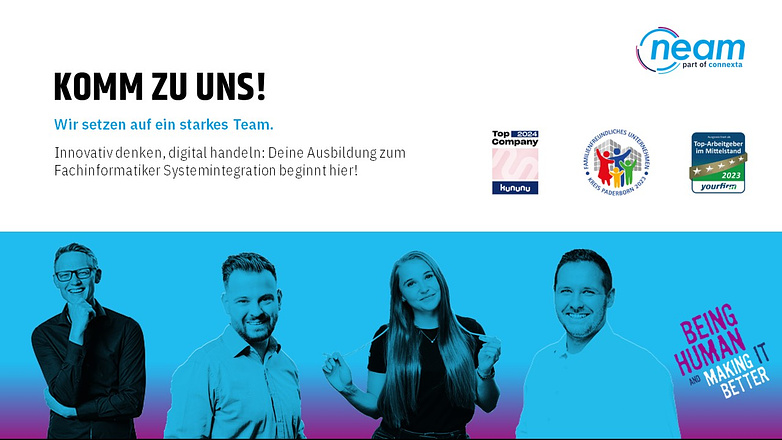 Selbst 1996 gegründet, sind wir, die neam IT-Services GmbH, ein mittelständisches IT-Beratungshaus mit Sitz in Paderborn. Mit mehr als 100 hochqualifizierten Mitarbeiterinnen und Mitarbeitern sind wir sowohl national als auch international in den Geschäftsbereichen IT-Services und Informationssicherheit für unsere Kunden tätig.