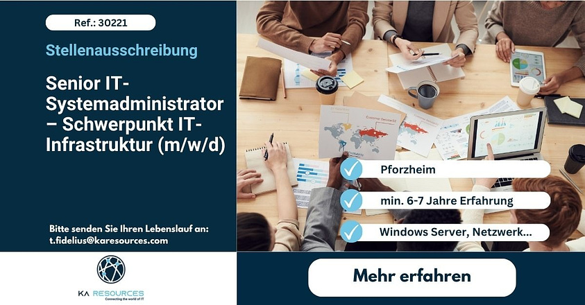 Weitere Stellen in der IT Infrastruktur, Server- und Netzwerkumfeld finden Sie auf unserer Homepage unter folgendem Link https://karesources.com/jobs/category/it-infrastructure/.