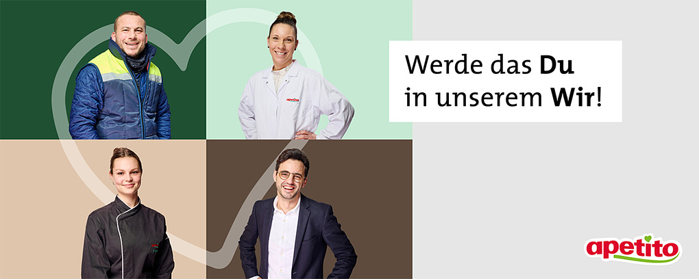 apetito – ein erfolgreiches Familienunternehmen, in dem Werte wie Nachhaltigkeit, Kundennähe und Fairness gelebt werden. Seit 1958 verfolgen wir ein Ziel: gutes Essen für Jung und Alt zu kochen. Dafür brauchen wir leidenschaftliche Mitarbeitende mit gutem Geschmack. Bei uns kannst du deine ganz persönlichen Stärken einbringen. Hier gibt’s keinen Futterneid, versprochen – dafür aber jede Menge Miteinander. Job-Sicherheit inklusive!