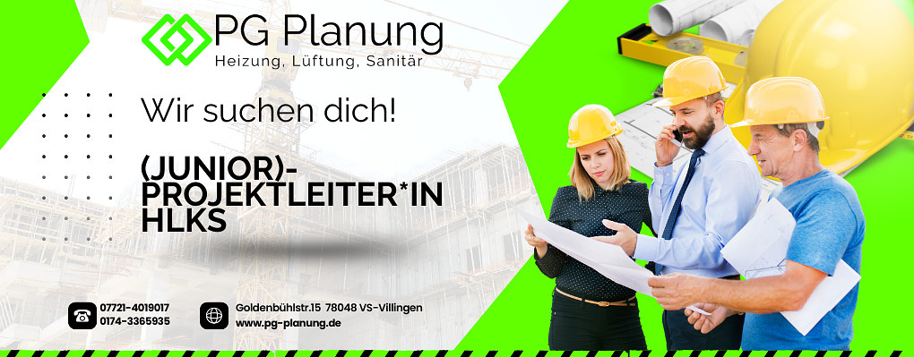 PG Planung GmbH ist ein Planungsbüro in Villingen-Schwenningen (78048), das sich auf technische Gebäudeausrüstung (Heizung-Klima-Kälte-Sanitär) spezialisiert hat. Wir suchen zur Verstärkung unseres Teams zum nächstmöglichen Zeitpunkt eine*n (Junior)-Projektleiter*in HLKS.