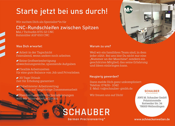 AWS M.Schauber GmbH Präzisionsteile zählt zu den führenden Herstellern von Präzisionsteilen in kleinen und mittleren Stückzahlen. Unser Leistungsspektrum umfasst die vollständige Bearbeitung rotationssymmetrischer Komponenten gemäß Kundenzeichnungen. Wir entwickeln maßgeschneiderte Lösungen für diverse Branchen und legen großen Wert auf technologische Innovationen sowie die Zufriedenheit unserer Kunden. Mitarbeiterzahl: 20 Personen