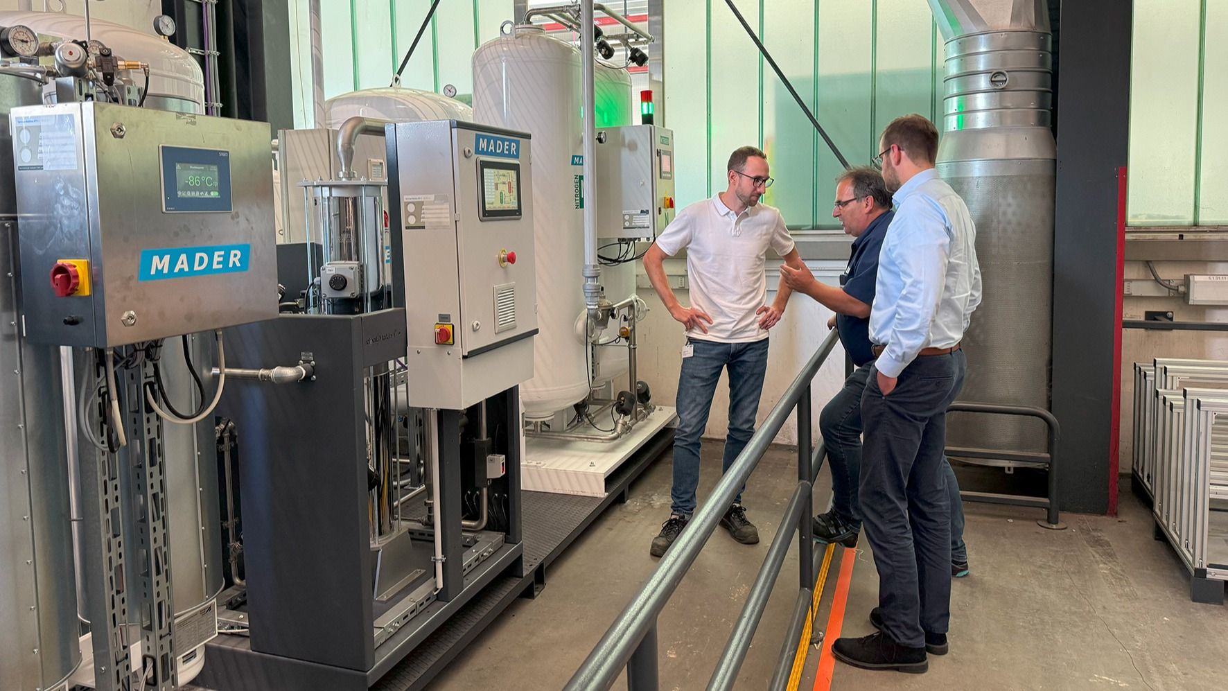 Auch beim Energieeinsatz will Knoll nichts dem Zufall überlassen. Der Stromverbrauch der Stickstofferzeugung wird bereits erfasst, perspektivisch soll auch der Druckluftverbrauch integriert werden. „Nur wenn wir diese Werte genau kennen, können wir die tatsächliche Rentabilität der Anlage berechnen.“ Ein weiteres Ziel ist die Verknüpfung mit dem Energiemanagement des Unternehmens. Um teure Lastspitzen zu vermeiden, soll die Anlage künftig in Abhängigkeit vom aktuellen Gesamtstrombedarf automatisch an- und abgeschaltet werden. Mittelfristig sollen die Stickstoffbündel als Energiespeicher „für unseren PV-Strom genutzt werden. Das wäre ein großer Schritt in Richtung Autarkie.“ Am Ende eines Projekts zählt für Knoll nicht, dass alles glatt lief – sondern dass die Dinge gelöst wurden. „Ein Projekt läuft nie völlig reibungslos. Wichtig ist, dass man Vertrauen hat und gemeinsam Lösungen findet“, sagt Eduard Mader rückblickend. Dieses Vertrauen habe Mader mehrfach unter Beweis gestellt. „Das Team ist sogar in Vorleistung gegangen und hat Komponenten auf Lager gelegt, obwohl wir unseren Auftrag wegen der noch fehlenden Bafa-Zusage noch nicht final platzieren konnten“, erinnert sich Eduard Mader. Für beide ist klar, dass Partnerschaft und räumliche Nähe zum Lieferanten entscheidend waren. „Man muss jemanden einfach mal anrufen können – und dann ist auch wirklich schnell jemand da“, so Buck. Sein Rat an andere Verantwortliche, die vor einer ähnlichen Entscheidung stehen:
